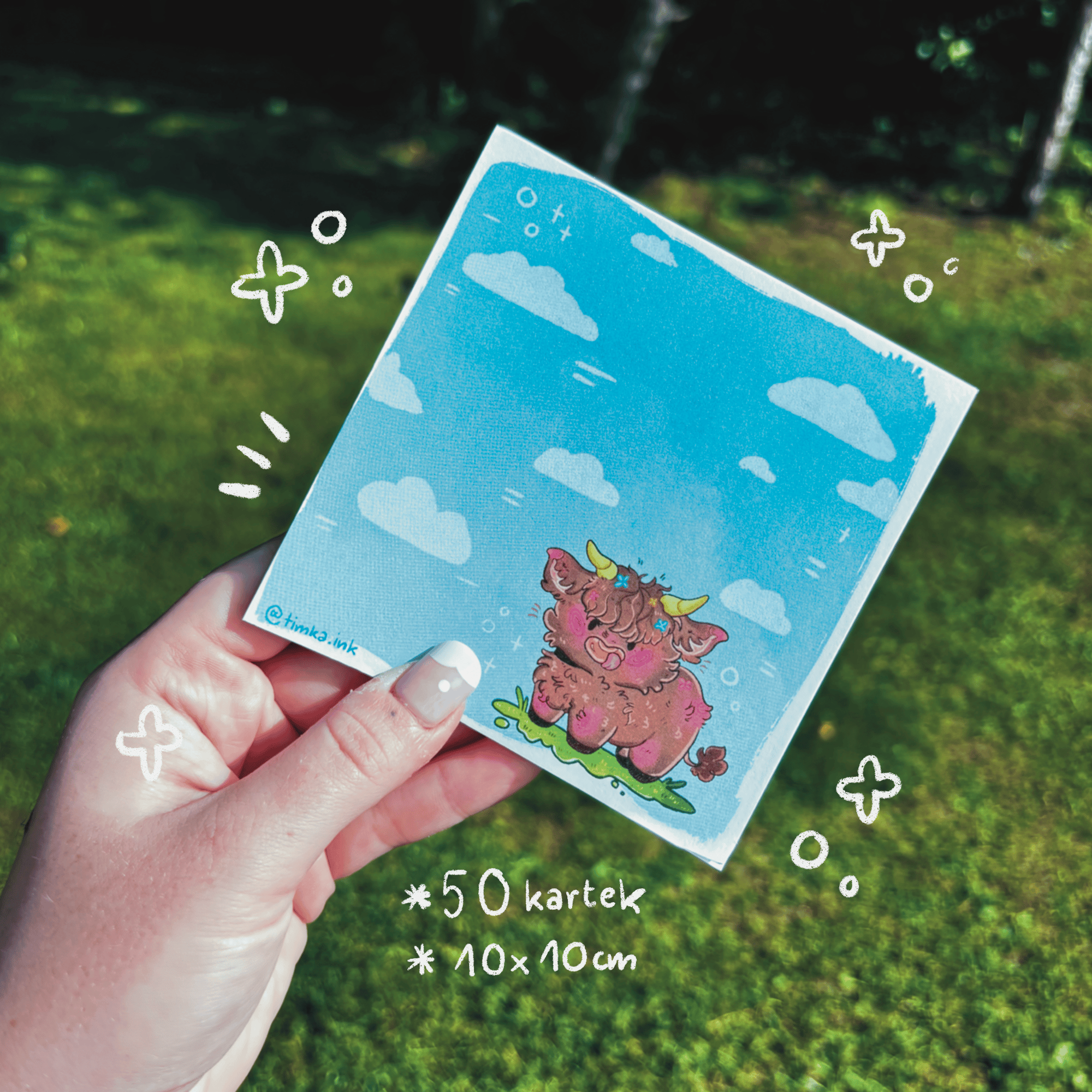 Notatnik papierowy,50 stron! Na każdej stronie rysunek krówki na łące. . Kolory mogą się różnić od tych na zdjęciu. Colors might be different than on example. Made in Poland.