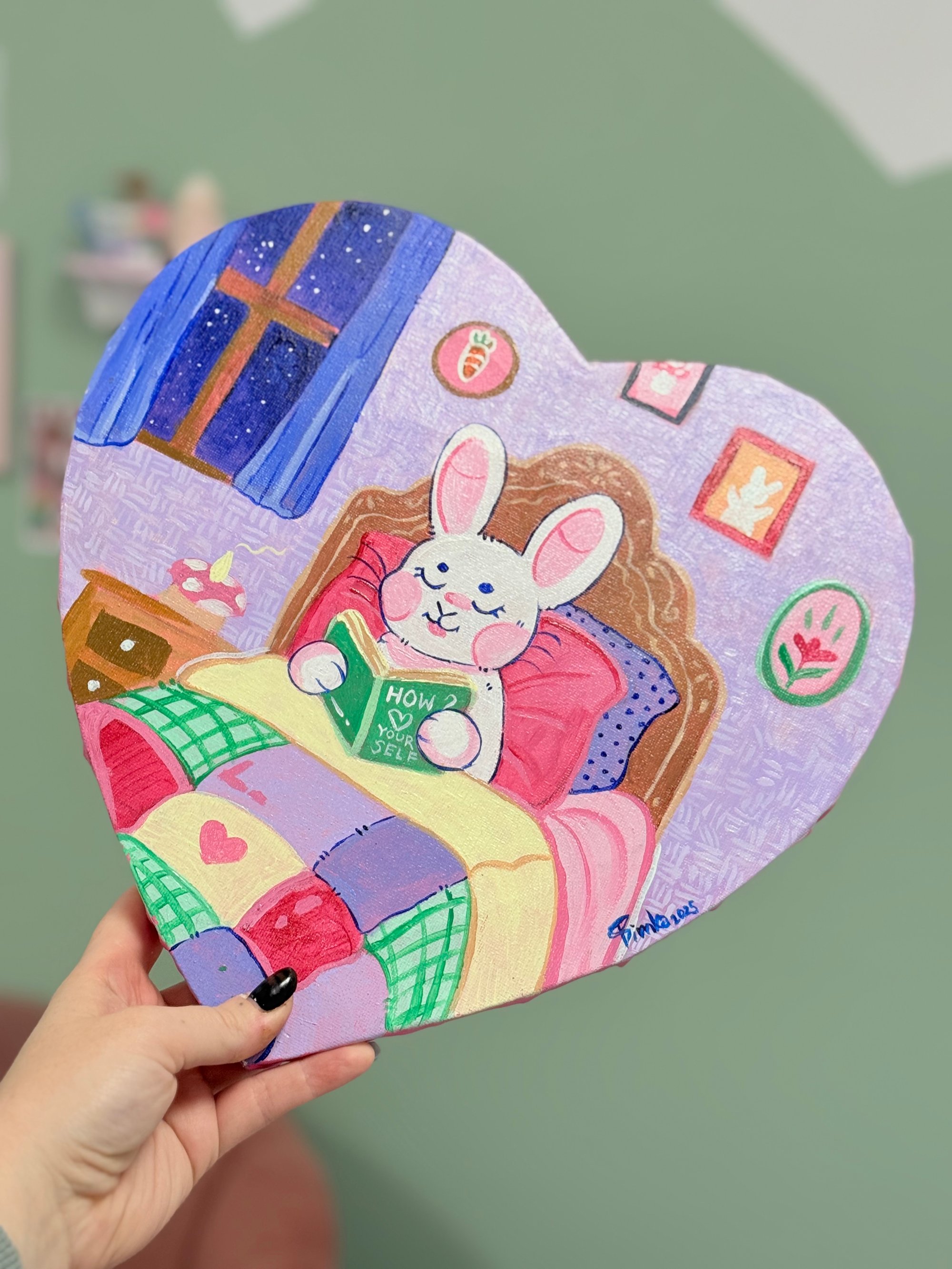 Obraz malowany ręcznie na płótnie farbami akrylowymi. Zabezpieczone warstwą werniksu (specjalnego lakieru) ułatwiającego wycieraniu kurzu/brudu oraz podbijające kolory.